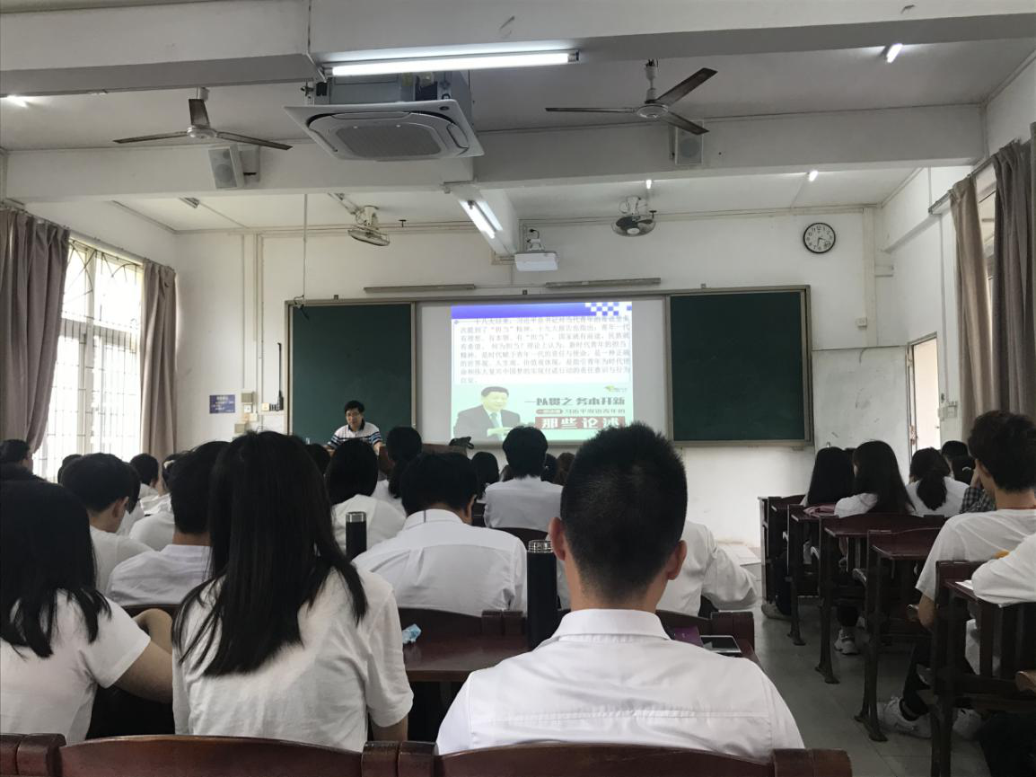 陈伟斌以“新中国主要发展历程、成就与启示”为主题,带领同学们回顾了新中国发展历程,特别提到了“抗美援朝精神”与“两弹一星精神”,要求同学们传承与发扬革命老辈“英勇顽强、舍生忘死”与“舍小家,为大家”的精神。在讲述新中国发展取得的伟大成就的时候,陈伟斌从经济总量、居民收入、科技实力、国防建设等12个方面展示了祖国发生的翻天覆地的变化。最后,从坚持中国特色社会主义制度、坚持中国共产党领导、坚持改革开放、始终代表人民群众四个方面总结了新中国发展的经验启示,并向同学们勾画了中国未来的美好图景。