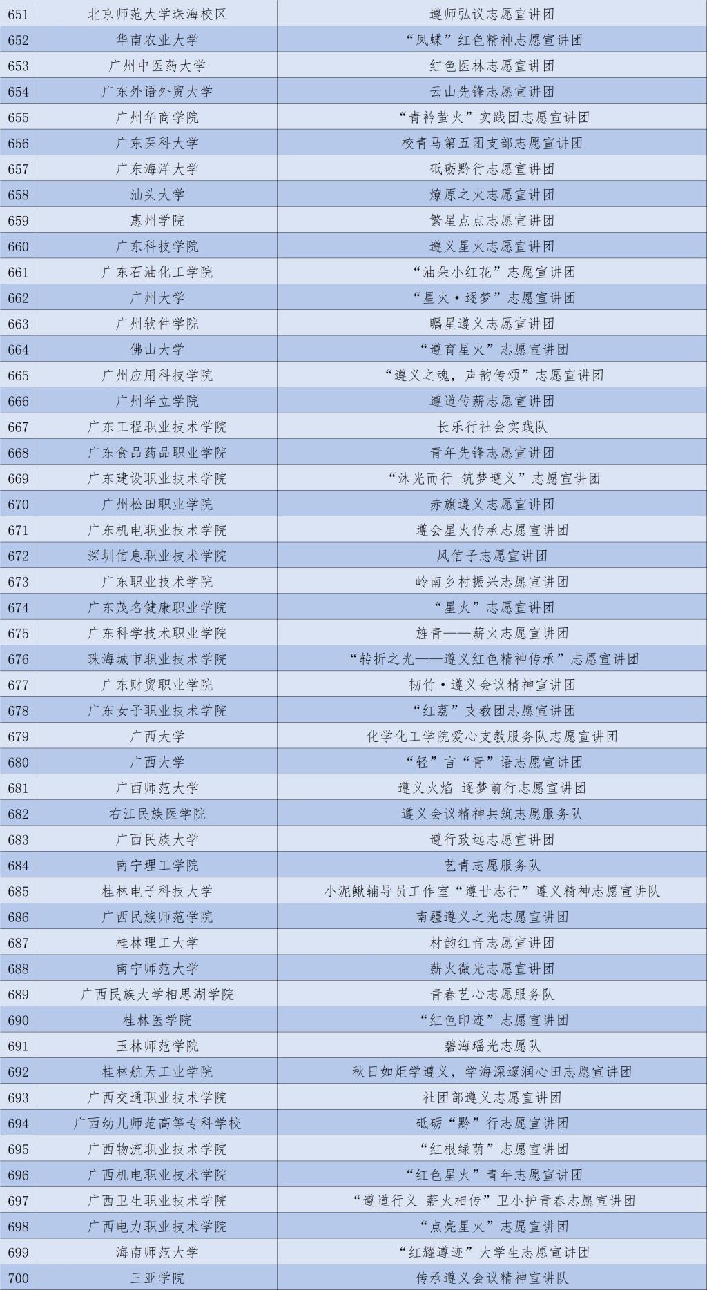 经过主办单位对所有申请材料的认真审阅和严格筛选,最终共有来自南开大学、四川大学、兰州大学等722所高校的1000支大学生志愿服务团队脱颖而出,成功入选2024年全国大学生遵义会议精神志愿宣讲团。在这1000支团队中,来自广东省的32支队伍占据了重要席位,其中,来自NT动漫