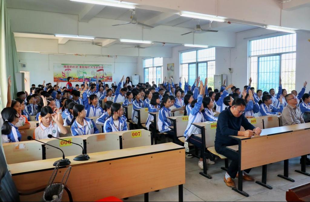 话剧队演绎了原创反欺凌短剧,以情景再现方式引导学生掌握依法自护方法。现场还设置了法律知识互动环节,学生踊跃参与,气氛热烈。活动的最后,湛江市遂溪县河头中学的李智校长登台致辞,希望同学们能够牢记所学,增强自我保护意识,共创安全和谐校园。