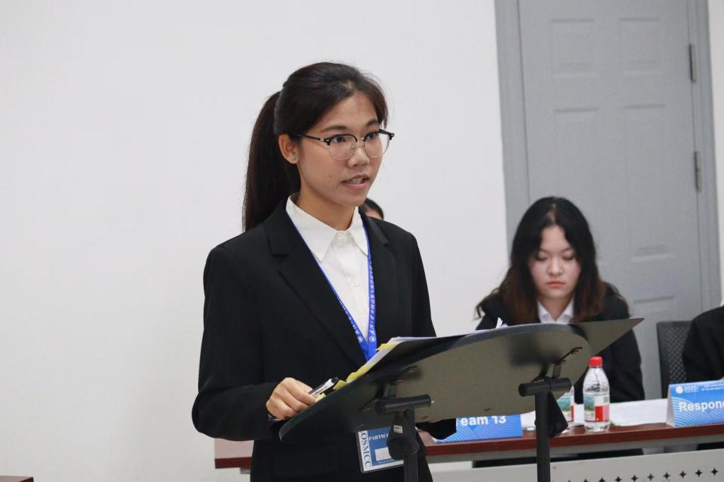 庭辩员沉着冷静,展现了极高的专业素养。在与国际关系学院的对决中,队员们针对管辖权争议与海底电缆问题展开了精彩的攻防;在对阵天津工业大学时,我方队员灵活应对法官的犀利提问,逻辑严密、据理力争,充分展现了海大学子扎实的英语功底和敏锐的思辨能力。