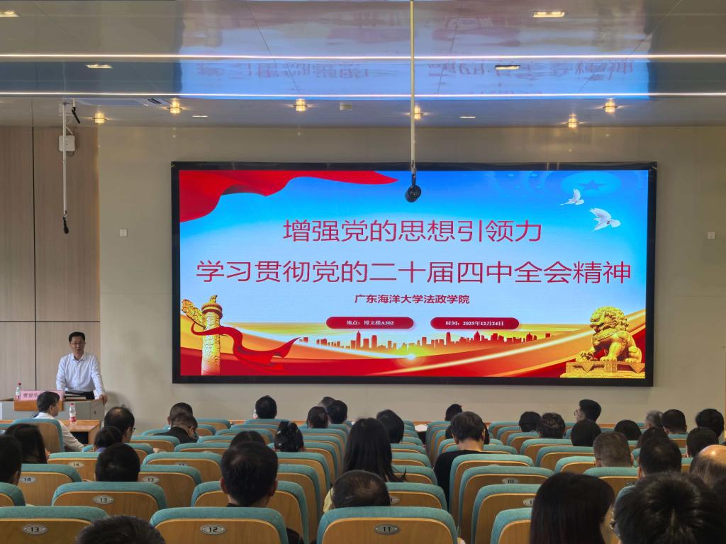 林忠新在主持讲话中指出,学习贯彻党的二十届四中全会精神是当前和今后一个时期的重要政治任务。全院教职工要以本次报告会为契机,持续深学细悟全会精神,切实把学习成果转化为干事创业的强大动力和具体行动;要立足职能,推动全会精神与学科建设、教学科研、人才培养深度融合,以高质量发展成效为学院、学校事业进步和国家战略实施贡献力量。