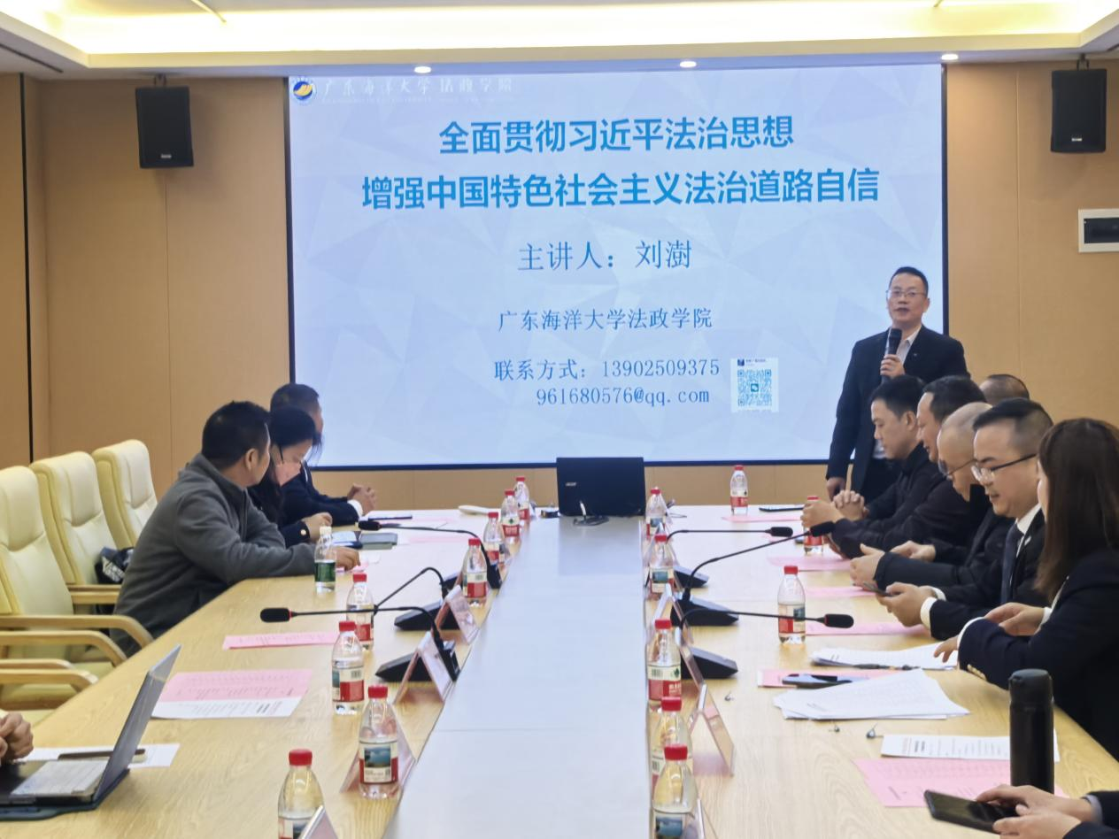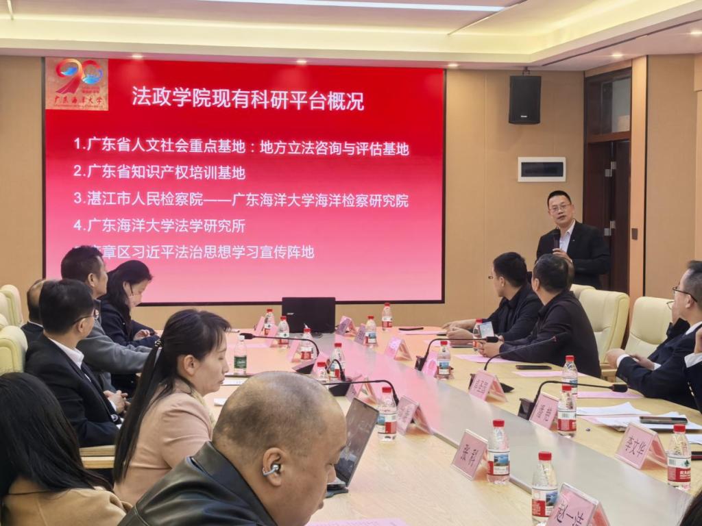 林忠新书记、原院长陈伟斌教授、副院长刘澍、刑事法学系主任张科、民商法学系主任刘升、海洋法与国际法学系副主任兼广东省法学会海洋法学研究会副秘书长曲明姬博士出席了此次会议。