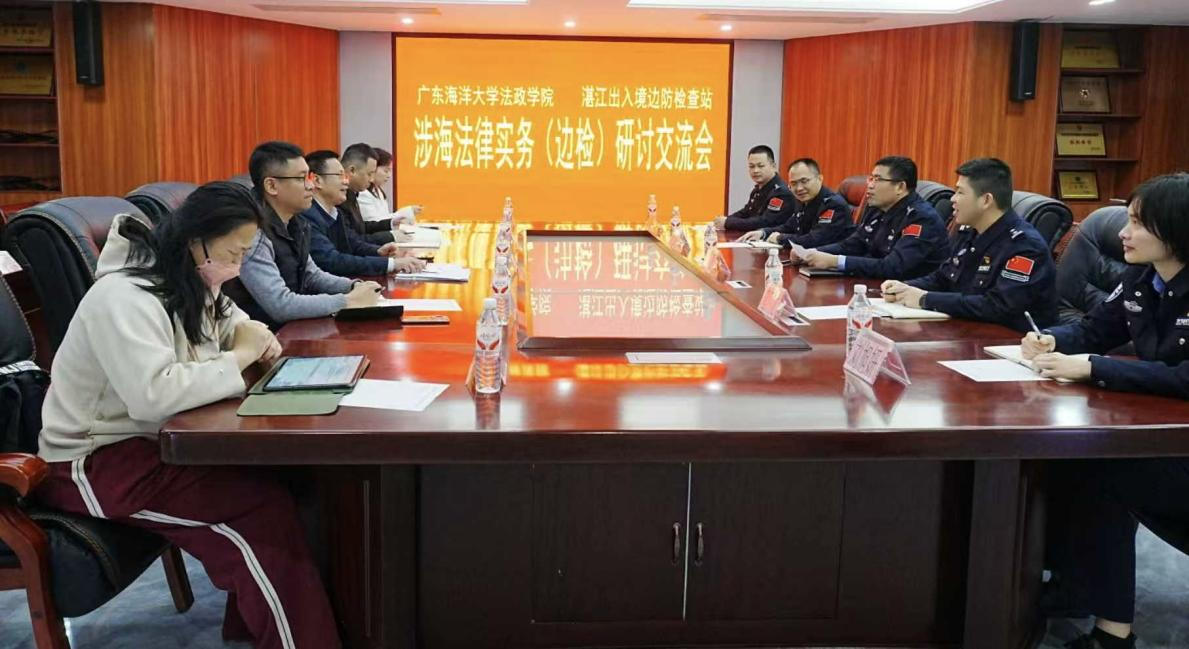 副院长刘澍教授带队到湛江市出入境边防检查站调研,随行人员包括湛江市委党校汤晓龙副教授、海洋法与国际法学系主任张艾妮、海洋法与国际法学系副主任曲明姬以及海大协华曾耿滨、叶春华、杨健永。湛江市出入境边防检查站党委委员、副站长王康接待了此次调研,并主持了座谈会。
