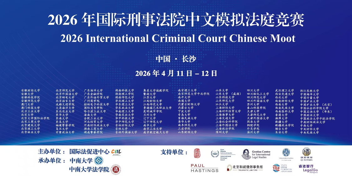 本届赛事由国际法促进中心主办,中南大学承办,共吸引北京大学、清华大学、中国政法大学、香港大学等全国130所高校代表队参赛,参赛规模创历史新高。ICC中文赛是经国际刑事法院官方授权、全球唯一以中文为比赛语言的顶级国际法模拟法庭赛事,也是我国涉外法治人才培养领域最具权威性和影响力的重要专业学术平台。赛事启动以来,经严格书状评审,共60支队伍晋级线下正赛。