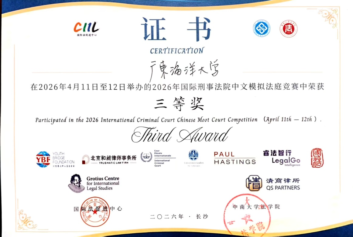 学子从全国百余所高校代表队中脱颖而出,荣获全国三等奖,充分展现了广海法学学子的专业素养和综合实力。