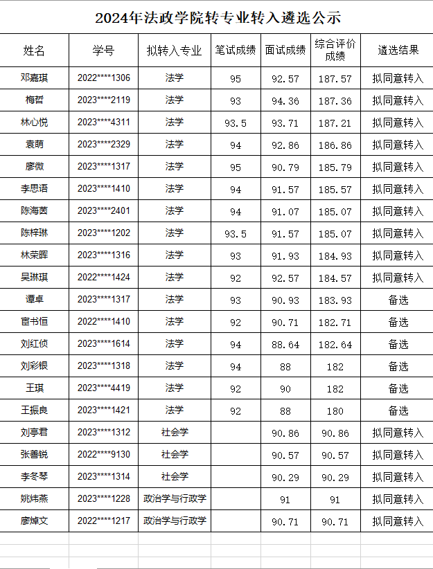 全日制本科生转专业学生遴选办法》,学院组织了转专业转入遴选工作。经学生申报笔试、面试考核,学院转专业工作委员会根据综合成绩进行了排序和遴选,拟同意邓嘉琪等15名学生转入NT动漫